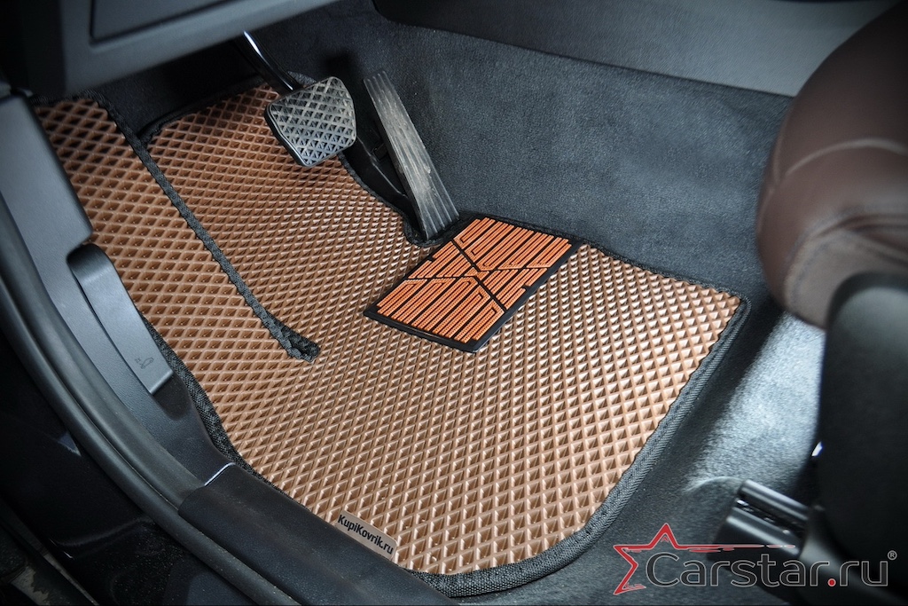 Автомобильные коврики EVA прекрасно подходят для всех существующих марок и моделей авто, здесь вы сможете заказать оптимальный аксессуар любого возможного цвета. По размерам они больше, чем стандартные резиновые коврики, поэтому покрывают максимальную площадь пола в салоне. А двойная система креплений (клипсы и липучки) позволяет надежно зафиксировать коврики в нужном месте.