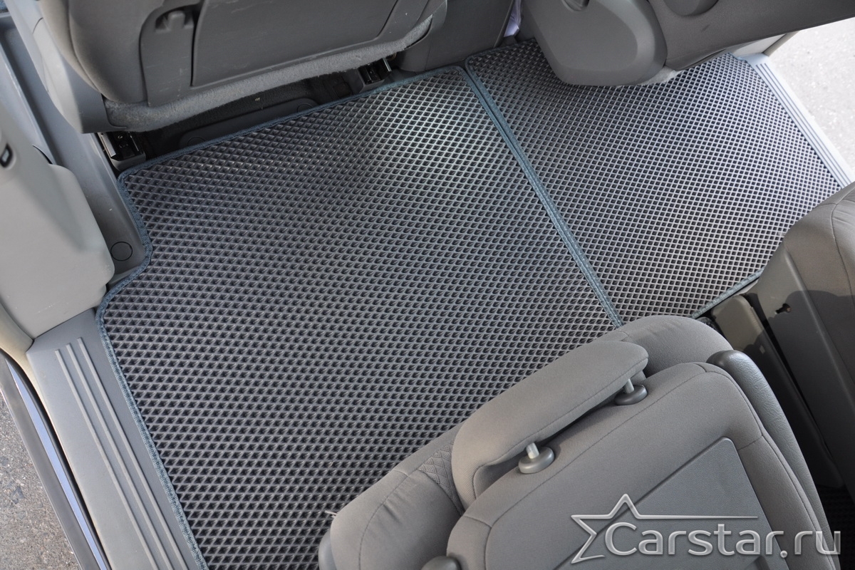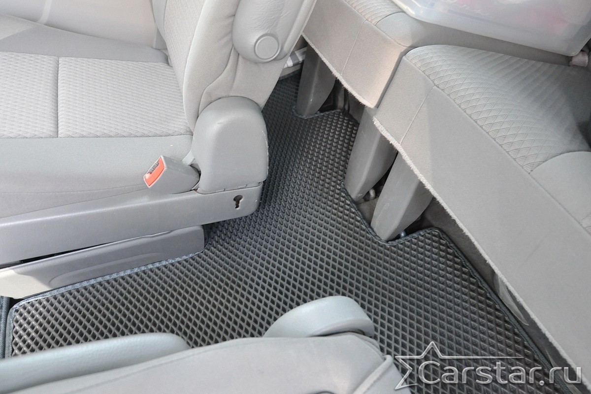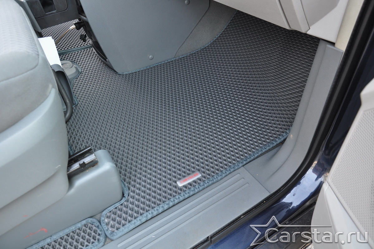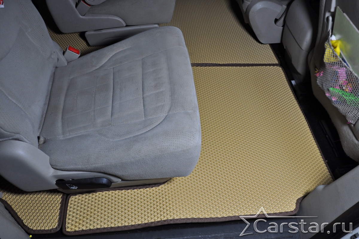 Автомобильные коврики EVA Dodge Grand Caravan V (2007-2020) 2 ряд: кресла 1+1 убираются в пол – это долговечные, удобные и универсальные аксессуары, которые помогут надежно защитить салон и багажник вашего авто от пыли, грязи и влаги в любое время года.