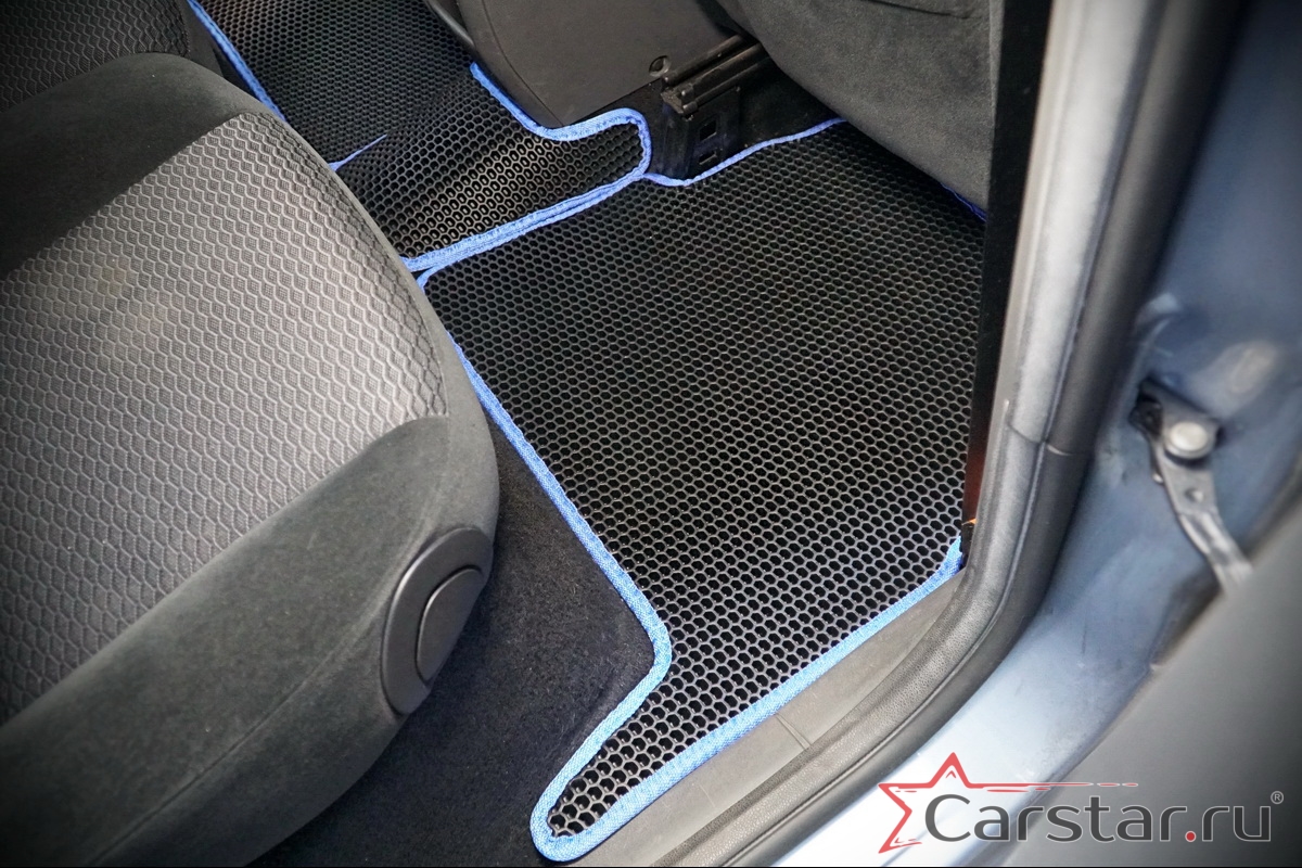 Толщина ковриков EVA составляет 10-12 мм. Глубина ячеек 7-8 мм. Такая толщина ковриков позволяет им служить довольно долго, не протираясь до 3 лет. А благодаря такой глубине ячеек коврик EVA площадью 1 кв.м. способен захватить около 3,5 л жидкости, сохраняя в чистоте вашу обувь и обивку салона.