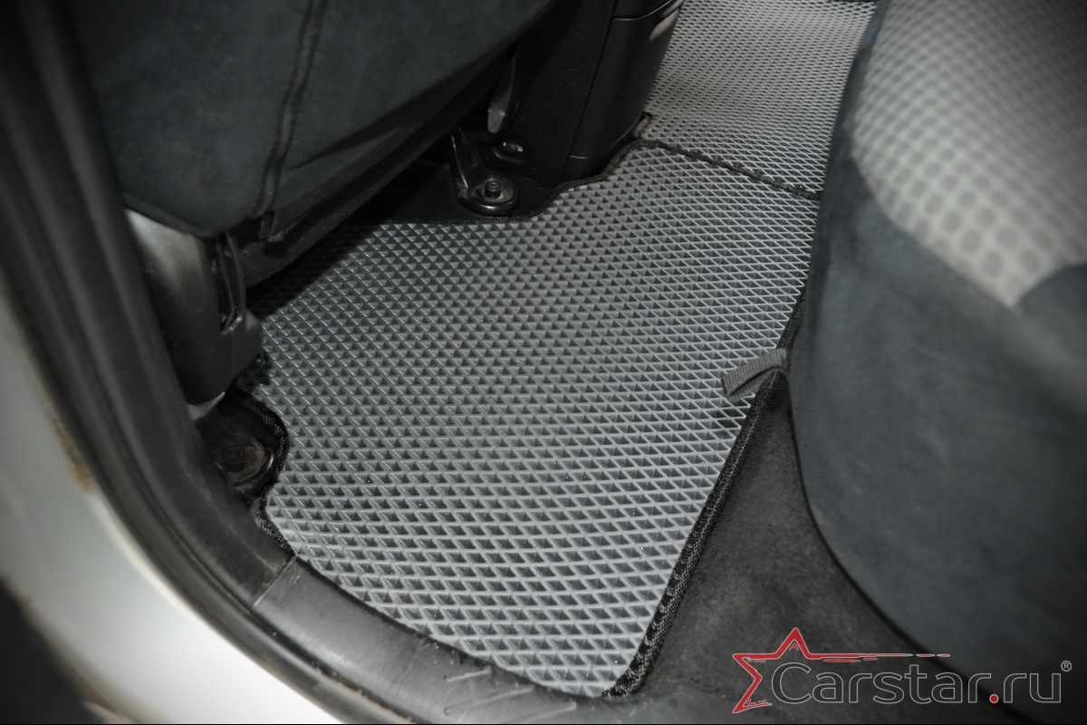 Толщина ковриков EVA составляет 10-12 мм. Глубина ячеек 7-8 мм. Такая толщина ковриков позволяет им служить довольно долго, не протираясь до 3 лет. А благодаря такой глубине ячеек коврик EVA площадью 1 кв.м. способен захватить около 3,5 л жидкости, сохраняя в чистоте вашу обувь и обивку салона.