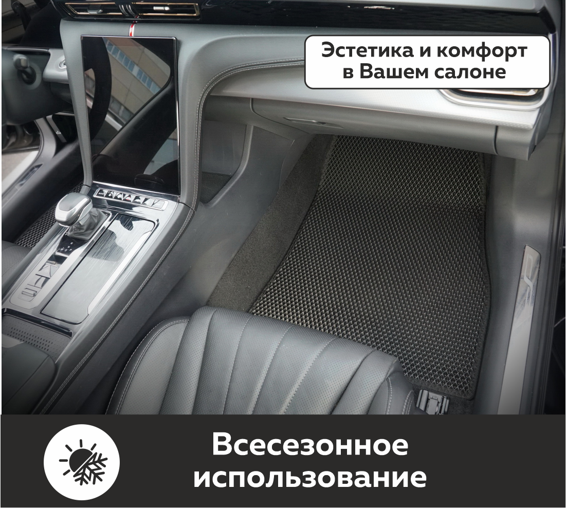 Автомобильные коврики EVA Hongqi H5 II (2022->) – это долговечные, удобные и универсальные аксессуары, которые помогут надежно защитить салон и багажник вашего авто от пыли, грязи и влаги в любое время года.
