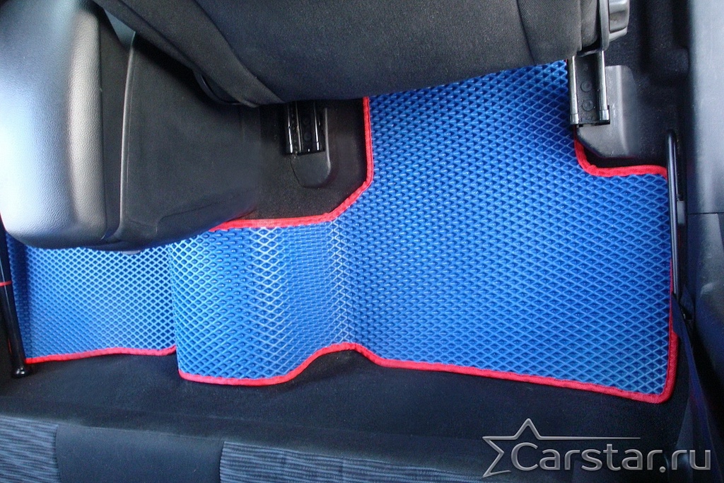 Толщина ковриков EVA составляет 10-12 мм. Глубина ячеек 7-8 мм. Такая толщина ковриков позволяет им служить довольно долго, не протираясь до 3 лет. А благодаря такой глубине ячеек коврик EVA площадью 1 кв.м. способен захватить около 3,5 л жидкости, сохраняя в чистоте вашу обувь и обивку салона.