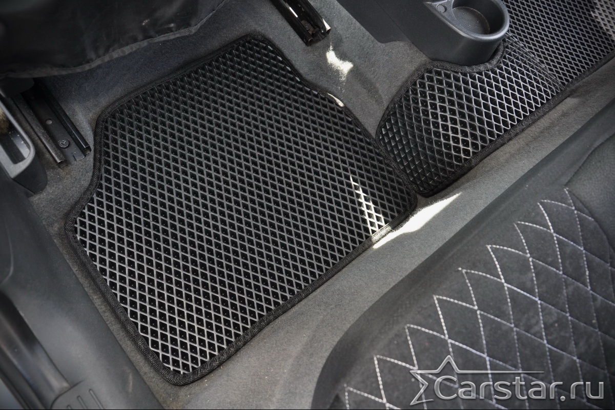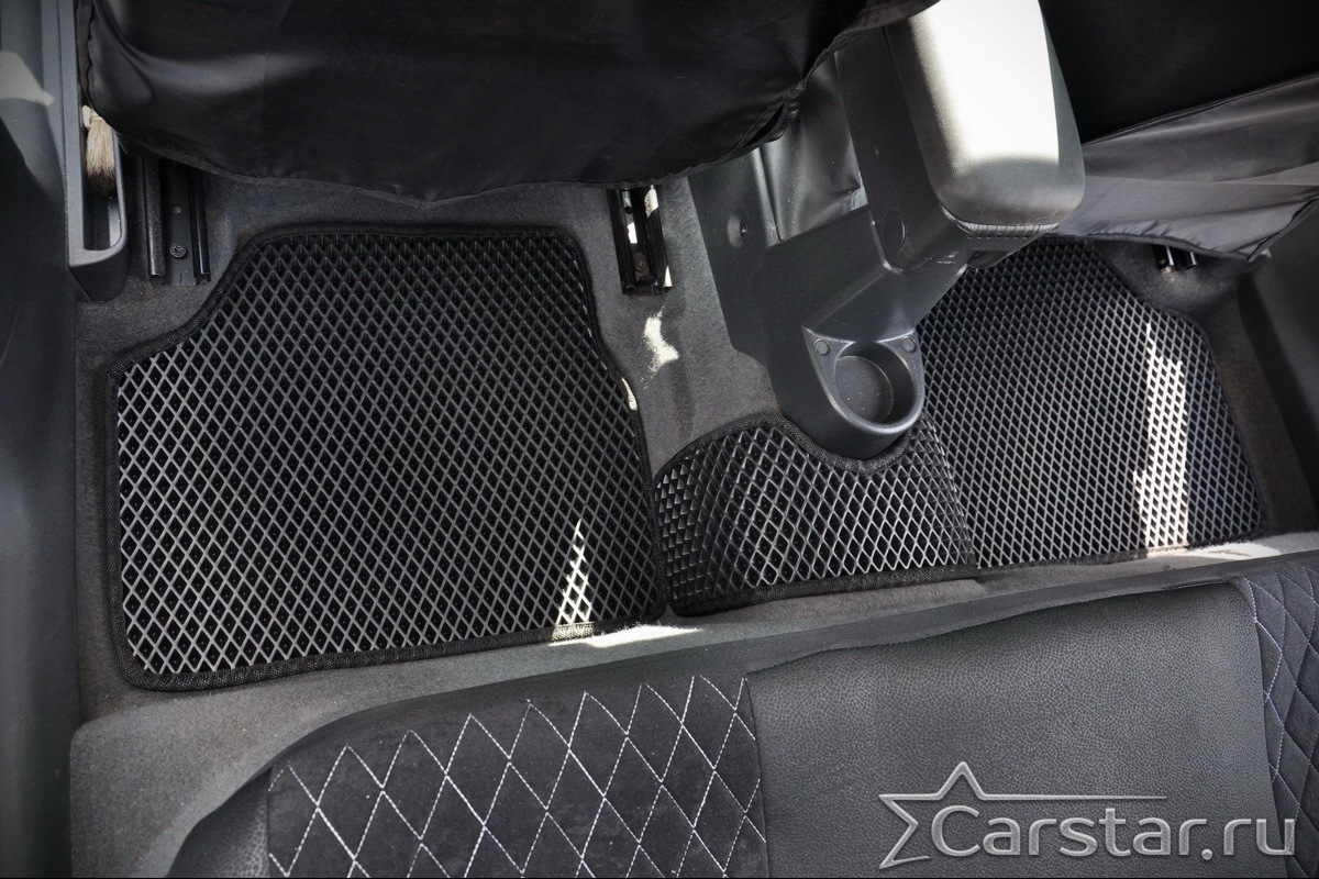 Толщина ковриков EVA составляет 10-12 мм. Глубина ячеек 7-8 мм. Такая толщина ковриков позволяет им служить довольно долго, не протираясь до 3 лет. А благодаря такой глубине ячеек коврик EVA площадью 1 кв.м. способен захватить около 3,5 л жидкости, сохраняя в чистоте вашу обувь и обивку салона.