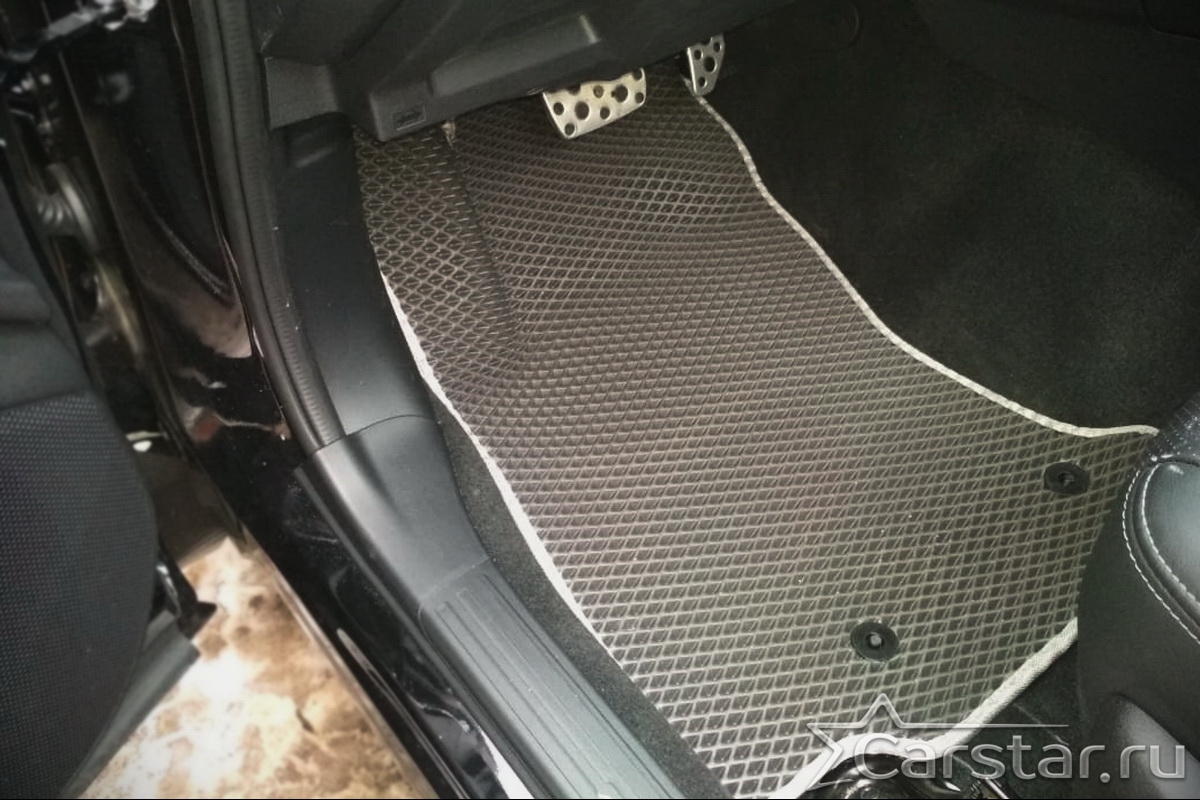 Автомобильные коврики EVA прекрасно подходят для всех существующих марок и моделей авто, здесь вы сможете заказать оптимальный аксессуар любого возможного цвета. По размерам они больше, чем стандартные резиновые коврики, поэтому покрывают максимальную площадь пола в салоне. А двойная система креплений (клипсы и липучки) позволяет надежно зафиксировать коврики в нужном месте.