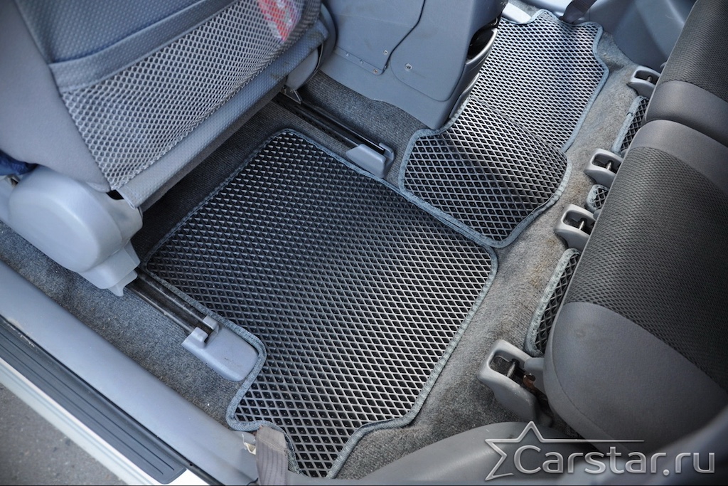Толщина ковриков EVA составляет 10-12 мм. Глубина ячеек 7-8 мм. Такая толщина ковриков позволяет им служить довольно долго, не протираясь до 3 лет. А благодаря такой глубине ячеек коврик EVA площадью 1 кв.м. способен захватить около 3,5 л жидкости, сохраняя в чистоте вашу обувь и обивку салона.