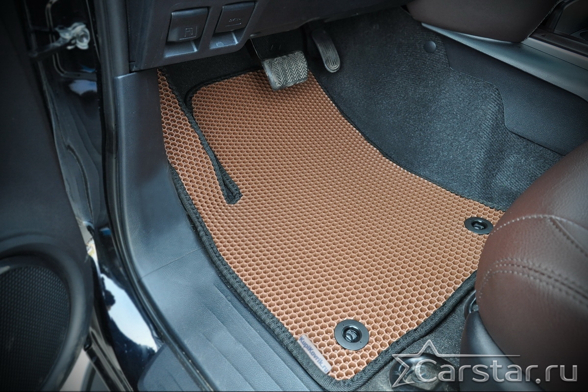 Автомобильные коврики EVA прекрасно подходят для всех существующих марок и моделей авто, здесь вы сможете заказать оптимальный аксессуар любого возможного цвета. По размерам они больше, чем стандартные резиновые коврики, поэтому покрывают максимальную площадь пола в салоне. А двойная система креплений (клипсы и липучки) позволяет надежно зафиксировать коврики в нужном месте.