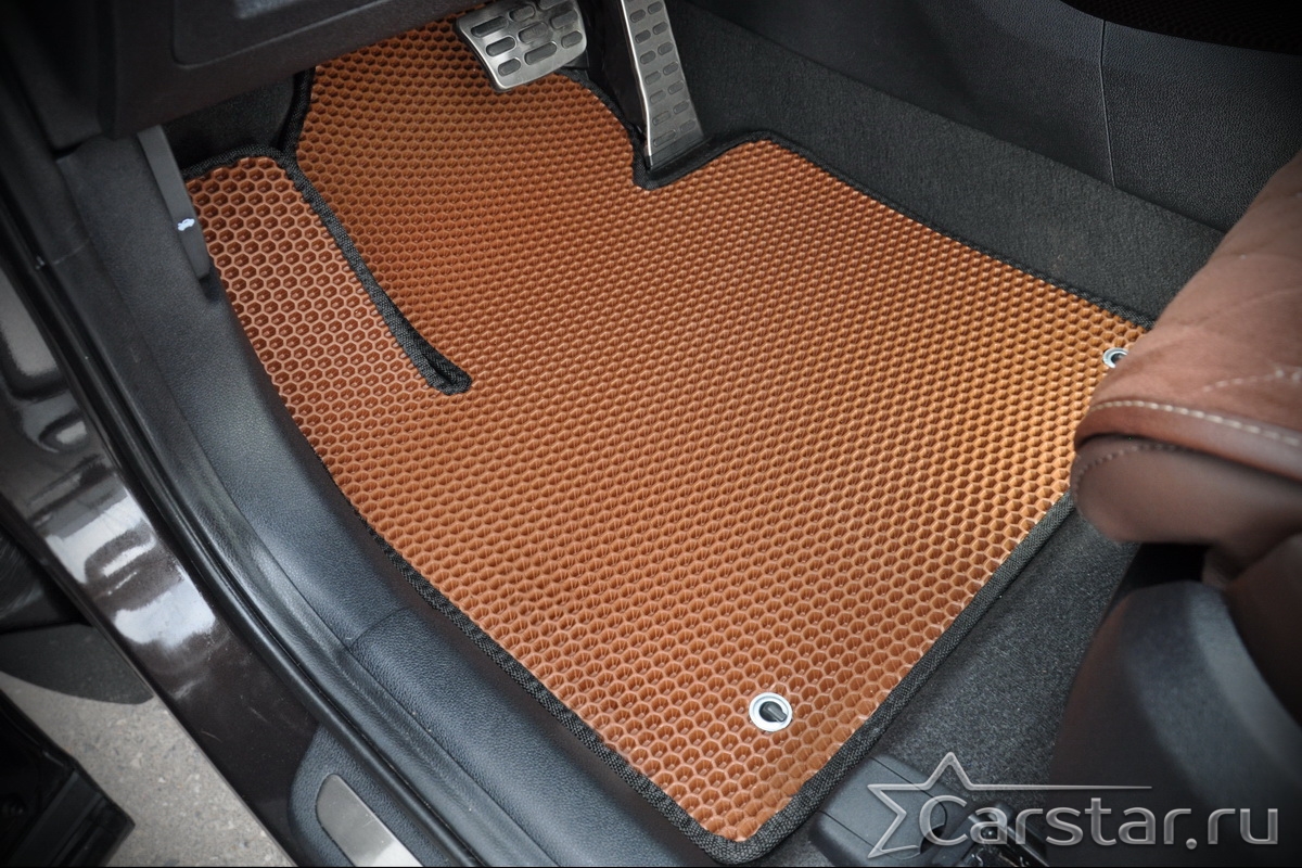 Текстильные коврики надёжно крепятся с помощью оригинальных систем фиксации. Обратная сторона имеет противоскользящее покрытие, что обеспечивает защиту от смещений и безопасность. Максимальное удобство достигается точными лекалами.