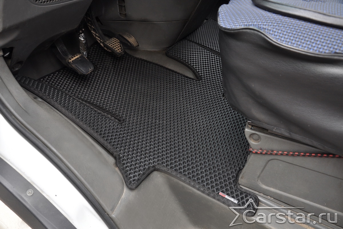 Приятный на ощупь густой плотный ворс текстильных ковриков придаст салону роскошный вид. Широкой выбор цветовой палитры ковролина и окантовки коврика не оставит равнодушным ни одного искушенного автолюбителя.