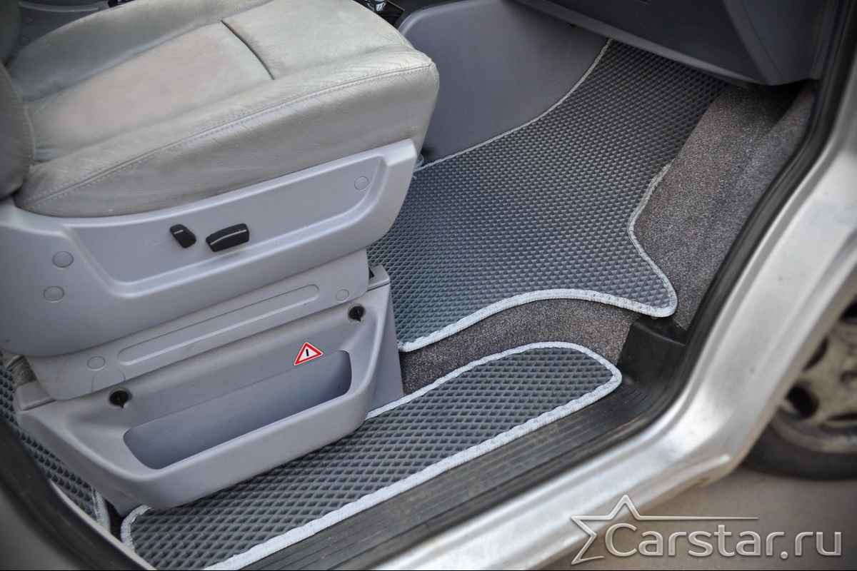 Текстильные коврики надёжно крепятся с помощью оригинальных систем фиксации. Обратная сторона имеет противоскользящее покрытие, что обеспечивает защиту от смещений и безопасность. Максимальное удобство достигается точными лекалами.