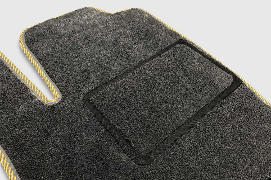 Приятный на ощупь густой плотный ворс текстильных ковриков придаст салону роскошный вид. Широкой выбор цветовой палитры ковролина и окантовки коврика не оставит равнодушным ни одного искушенного автолюбителя.